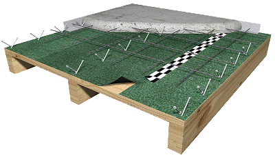 Preparació del perímetre de recolzament de les biguetes. Replanteig i col·locació en sec de les biguetes. Col·locació dels taulers. Apuntalament. Resolució del recolzament sobre l'element estructural. Col·locació d'un entramat dels muntants de fusta, ensamblats en els creuaments de les biguetes. Anivellació. Suport i fixació dels taulers. Col·locació de la membrana impermeabilitzant. Col·locació de la banda desolidaritzadora. Cargolament dels connectors per a forjat de fusta i formigó. Col·locació de la malla electrosoldada amb separadors homologats. Abocament i compactació del formigó. Reglejat i anivellació de la capa de compressió. Curat del formigó. Desapuntalament.